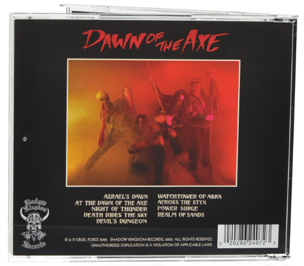 It's rare for a band to be away a full decade and then come back with their best work, but such is the case with CRUEL FORCE and Dawn of the Axe. There's some strange magick brewing in the Devil's Dungeon, and they've crossed the Styx to bring you that Power Surge! To celebrate this momentous occasion, SHADOW KINGDOM will also be reissuing on a worldwide scale the band's first two albums: the time of CRUEL FORCE is NOW!