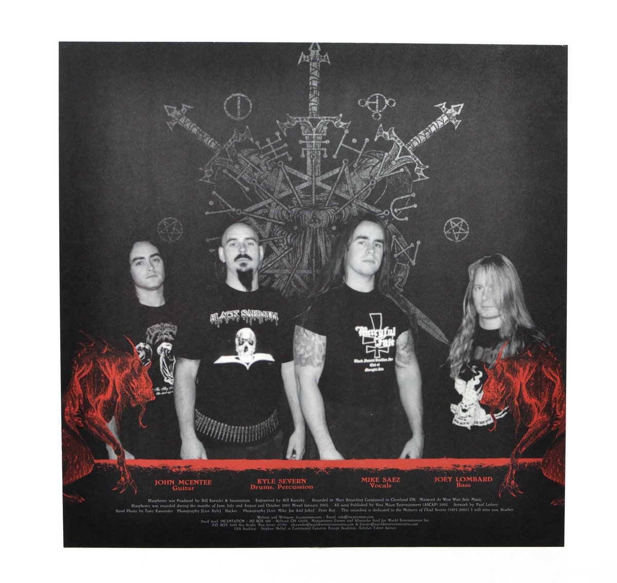 One of the most important bands ever to emerge in the death metal genre, INCANTATION is often imitated but never equaled. HELLS HEADBANGERS has worked extensively with the band in the past and in recent years on deluxe vinyl editions of such classic albums as Mortal Throne of Nazarene (1994) and Diabolical Conquest (1998) as well as a wide range of merchandise, and now the label unearths the band’s long-out-of-print sixth album, Blasphemy. Featuring the fruitful power-trio lineup of founding guitarist (and eventual vocalist) John McEntee, bassist Joe Lombard (RIP), and longtime drummer Kyle Severn, Blasphemy was released in 2002 and showed a lean & mean INCANTATION, one perhaps more in tune with their primitive beginnings and certainly one which could explore filthy labyrinths of sound. That Profanatica founder (and early INCANTATION member) Paul Ledney did the unforgettable cover art underlining the truly dark and underground-minded feel of this record, which sadly was mishandled by the two labels originally handling its release.